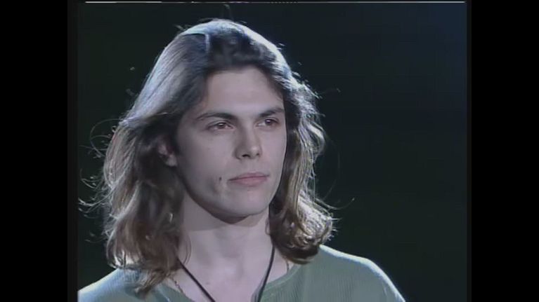 Il cantautore canta il primo estratto del suo album d'esordio "Destinazione Paradiso", poi riceve un disegno da una fan.