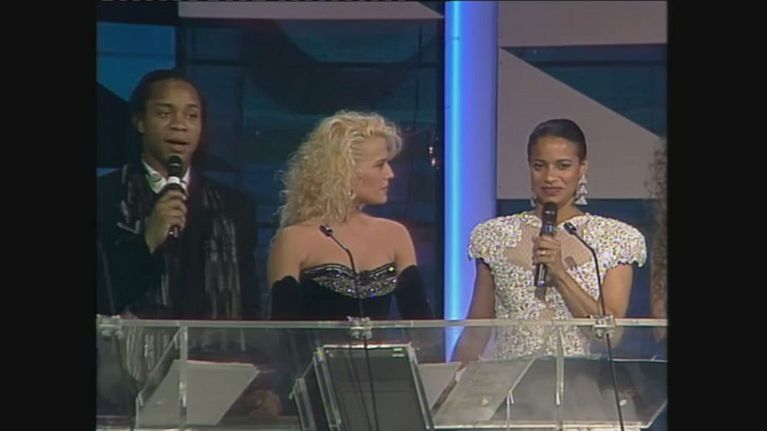 Il cast di Saranno Famosi ritira il Telegatto come miglior telefilm nel 1989