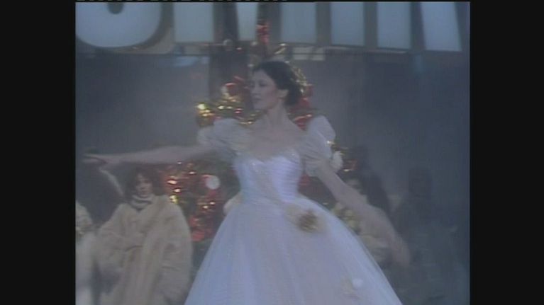 Carla Fracci, ospite del programma di Mike Bongiorno, si esibisce e poi scambia due chiacchiere con il conduttore