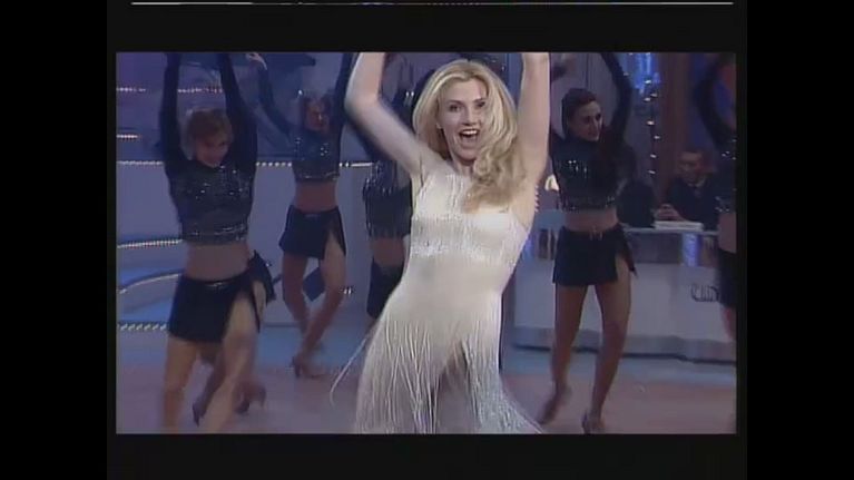 Lorella Cuccarini apre il programma di ballo del 1996 con una sigla spettacolare