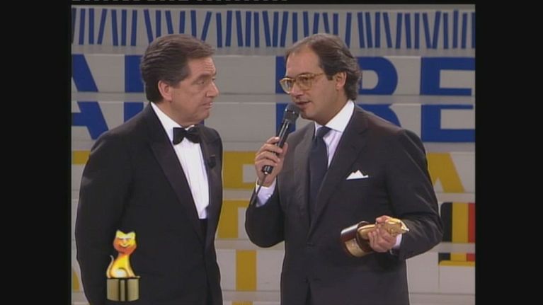 Roberto Baggio consegna il Telegatto per la miglior trasmissione sportiva del 1991