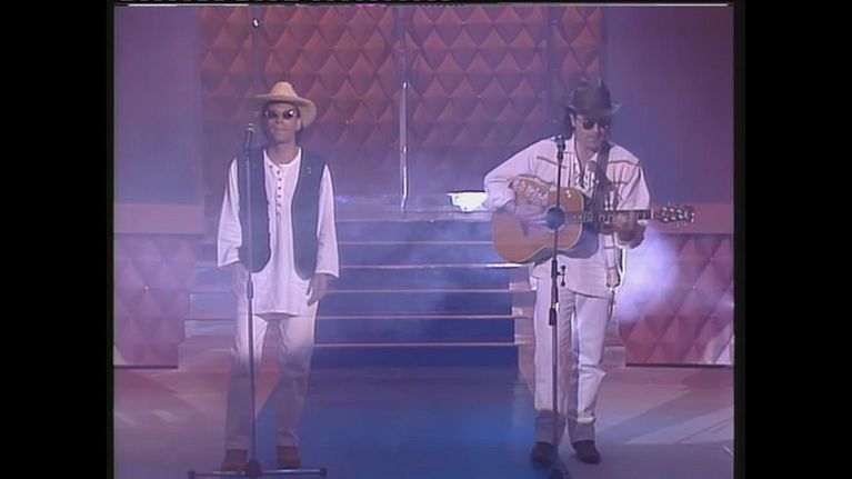 Il duo napoletano porta chitarre, cappelli e occhiali da sole sul palco di Stranamore nel 1994.