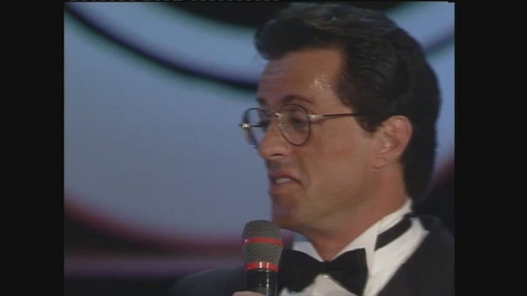 Sylvester Stallone ritira il Telegatto nel 1990