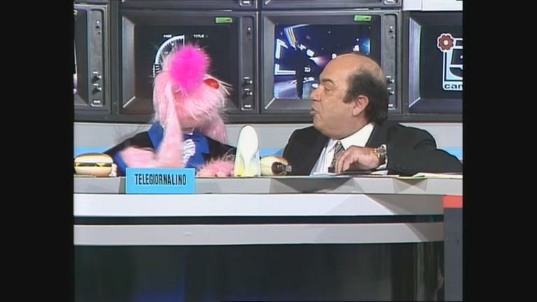 Nella puntata dedicata ai programmi del 1990, Muratori doppia dal vivo il pupazzo Uan