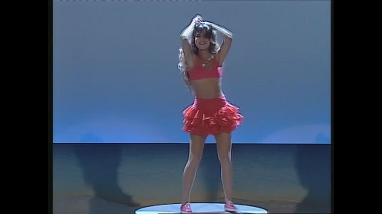 Una giovanissima Miriana Trevisan balla sul cubo a Non è la Rai 1992