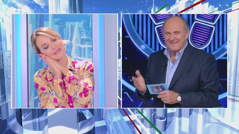 Gerry Scotti non vuole svegliare Barbara che dorme.