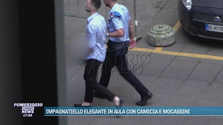 Impagnatiello elegante in aula con camicia e mocassini