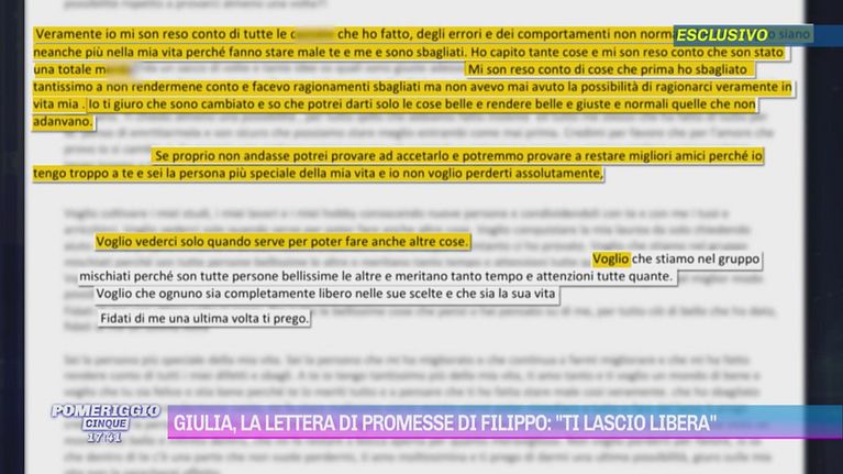 La lettera di promesse di Filippo: "Ti lascio libera".