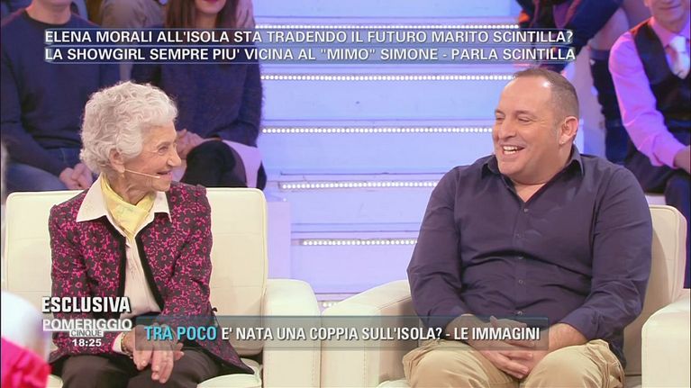 Con Scintilla e la signora Pellegrina si parla dell'avvicinamento avvenuto all'Isola tra Elena Morali e Simone "il Mimo"
