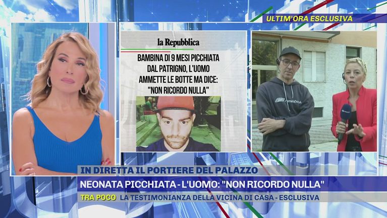 Bimba di 9 mesi presa a calci e pugni dal patrigno - In diretta il portiere del palazzo