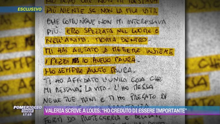 Valeria scrive a Louis: "Ho creduto di essere importante"