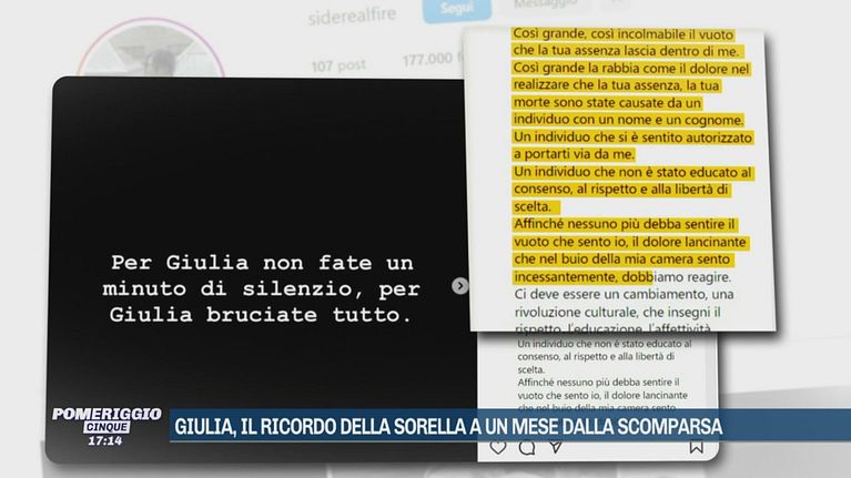 Giulia Cecchettin, il ricordo della sorella a un mese dalla scomparsa