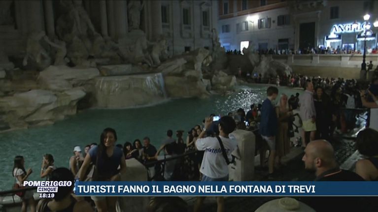 Turisti fanno il bagno nella Fontana di Trevi