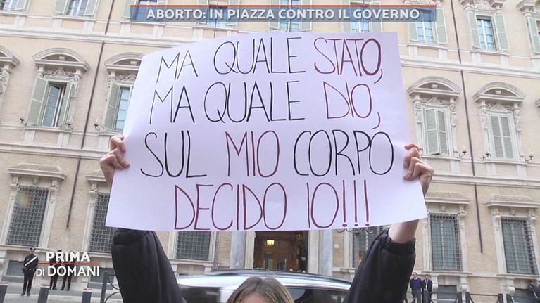 La Rete nazionale dei consultori scende in piazza di fronte al Senato alla vigilia dell'arrivo in Aula del discusso emendamento al PNRR che permetterà alle associazioni pro vita di entrare nei consultori.