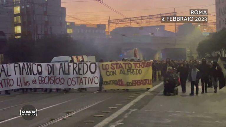 La violenza degli anarchici in piazza per Cospito