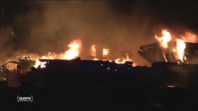 Lampedusa, a fuoco i relitti dei barconi