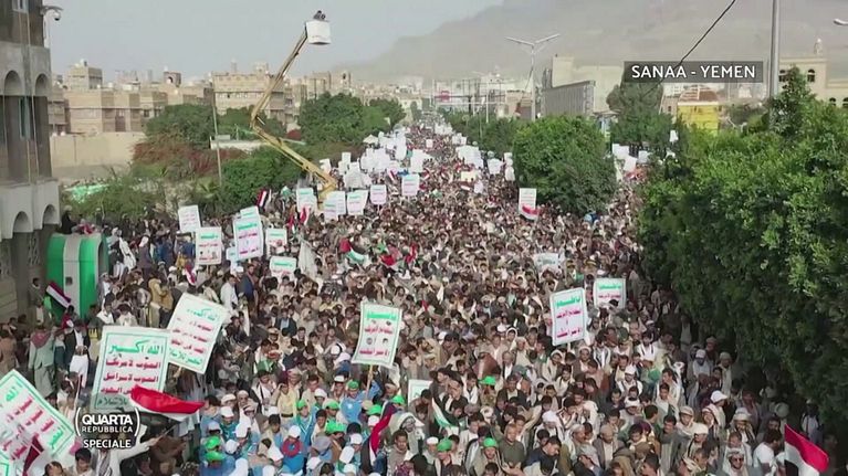 Le immagini delle piazze gremite di persone che festeggiano l'attacco ad Israele.