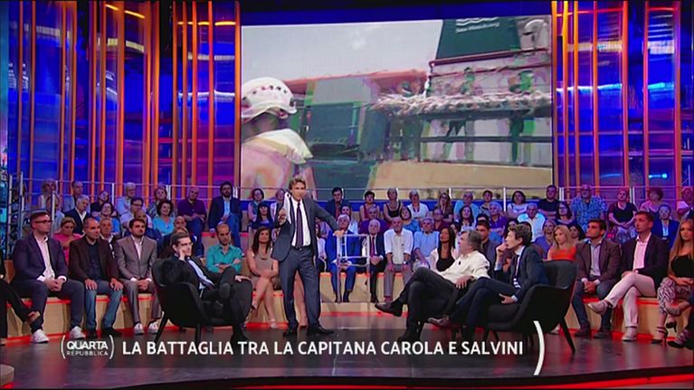 Gli ospiti in studio discutono sulle motivazioni che avrebbero spinto Carola Rackete a portare la Sea Watch in Italia.