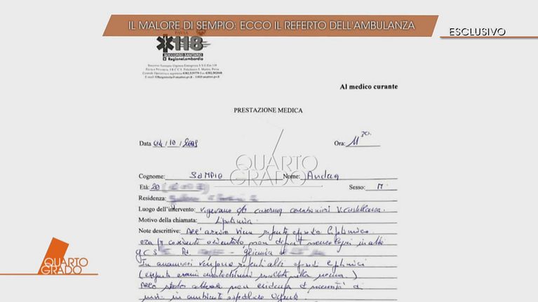 In esclusiva il referto dell'ambulanza chiamata per il malore di Andrea Sempio che ha avuto durante un interrogatorio.