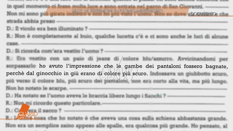 La testimonianza di una donna che afferma di aver visto un uomo che sulle spalle portava un sacco nero il giorno della morte di Lilly sembra essere un tassello importante per il caso.