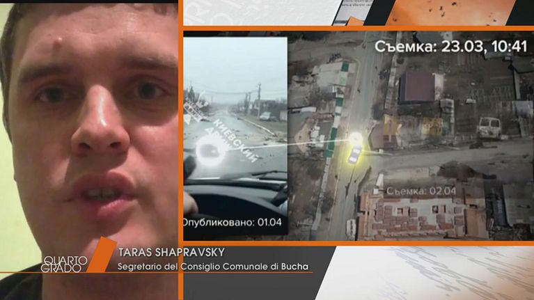 In collegamento per Quarto Grado Taras Shapravsky, il Segretario del Consiglio Comunale di Bucha che racconta quello che ha visto e subito nella sua città.