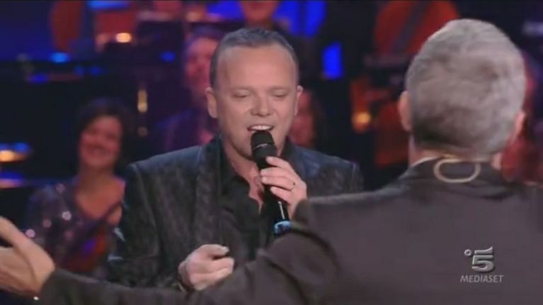 Bonolis si esibisce con D'Alessio cantando insieme una famosa canzone napoletana.