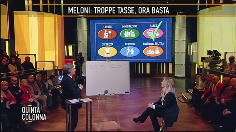 Paolo Del Debbio intervista il premier Giorgia Meloni.