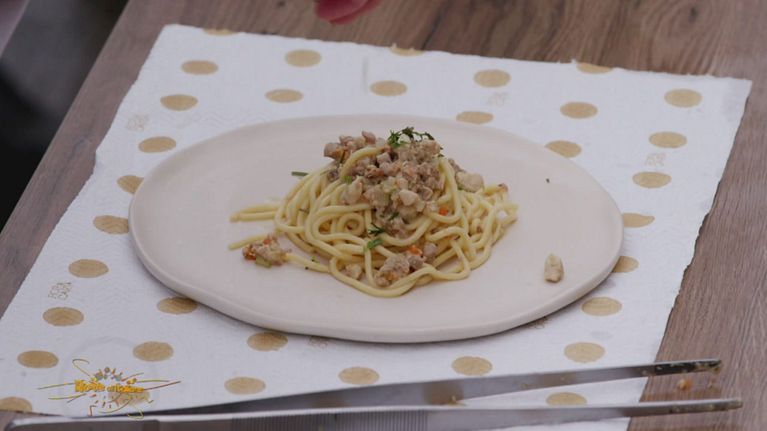 Un saporito ragù bianco con un tritato di carni di faraona, anatra e gallina padovana per condire i bigoli.