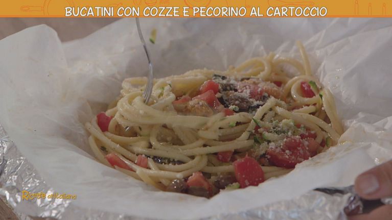 Bucatini con cozze e pecorino al cartoccio