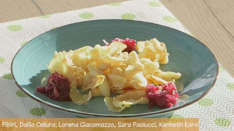 La paprika insaporisce delle gustose chips di calamari e patate, servite con una composta di cipolle rosse con aceto di mele e zucchero di canna.