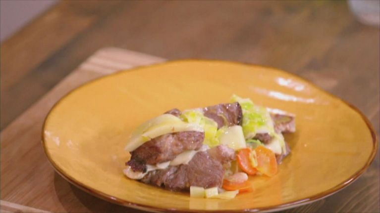 Collo di maiale con formaggio e carciofini
