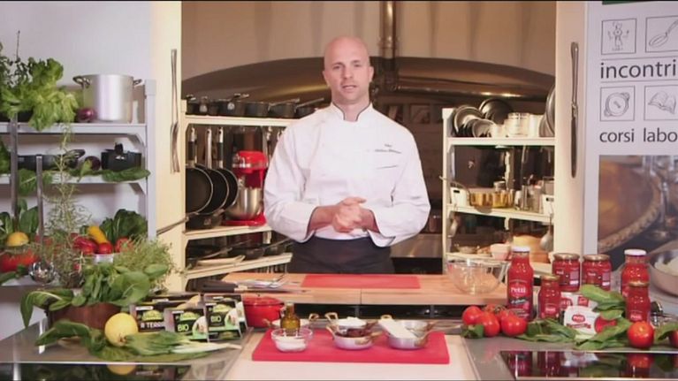 Oggi lo chef, preparerà un fagottino di pasta fillo con burrata, pomodori secchi, abbinato ad un pesto di basilico.