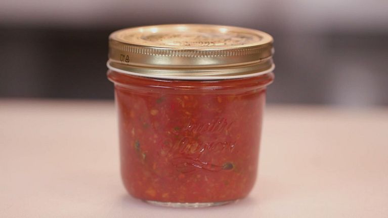 Una bella salsa di pomodori e peperoni al profumo di basilico, da conservare in un luogo fresco e buio.
