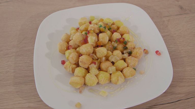 Vediamo la versione umbra di questo delizioso dolce, tanti piccoli gnocchetti che si otterranno da un panetto che verranno poi fritti.