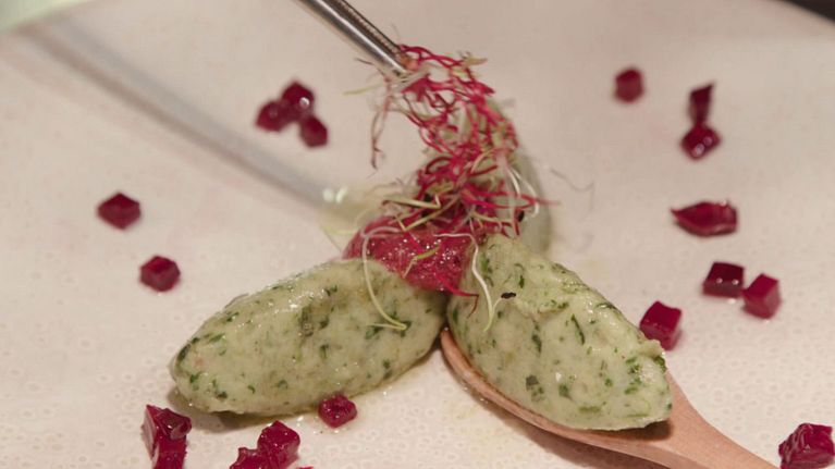Gnocchi alle erbe con fonduta e crema di rape rosse