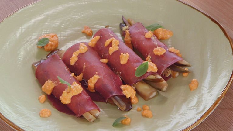 Le melanzane sono ricche di fibre che apportano benefici all'intestino e riducono il colesterolo. Gianluca Mech ci propone la ricetta: Rotolini di bresaola con melanzane