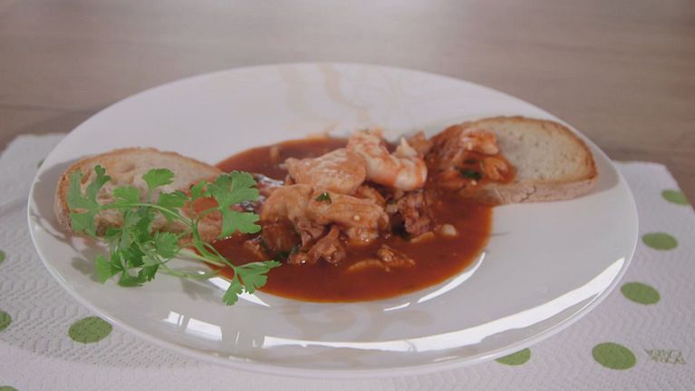 Un'ottima zuppa di pesce preparata dalla cuciniera, Anna Moroni insieme alla campionessa di scherma, Margherita Granbassi, volto sostenitore dell'Airc, per la ricerca contro il tumore al seno: doniamo insieme al numero 45521.