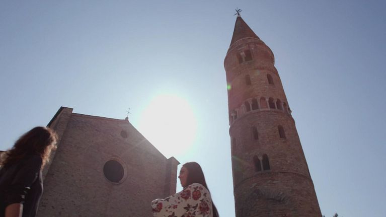 Colori sgargianti per una magica atmosfera: le case e il campanile del Duomo di Santo Stefano.