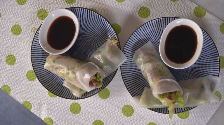 Un composto a base di carne di maiale, funghi, cavoli e germogli di soia per realizzare degli involtini dal sapore internazionale...