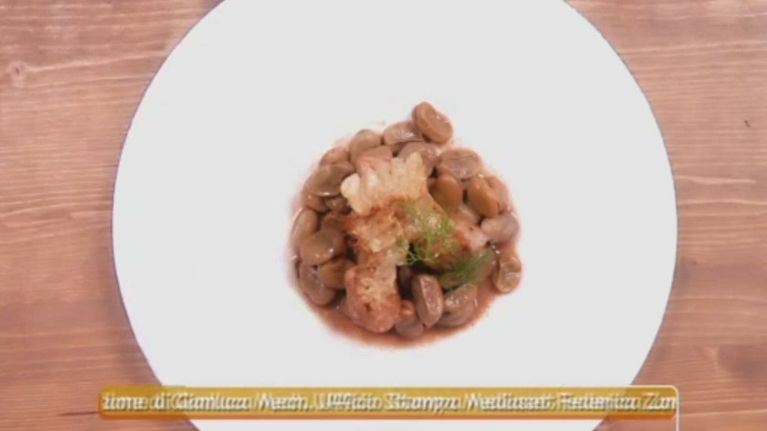 Un secondo piatto saporito e goloso, piccoli tocchetti di carne di maiale accompagnati da fave cotte.