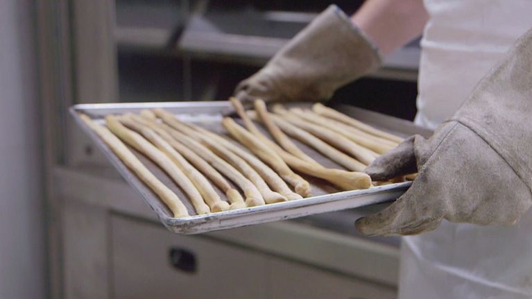 La nostra Annalisa Mandolini impara a relizzare i grissini in un tipico forno di Torino.