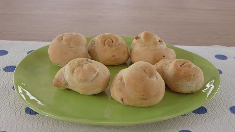 Anna Moroni prepara dei gustosi rustici salati umbri con la forma di un piccolo panino ma la consistenza fragrante di un rustico.