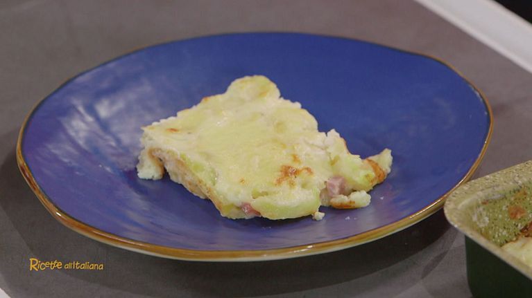 un ricco e goloso piatto unico o contorno molto ricco, con strati di patate, besciamella, prosciutto cotto e provola.