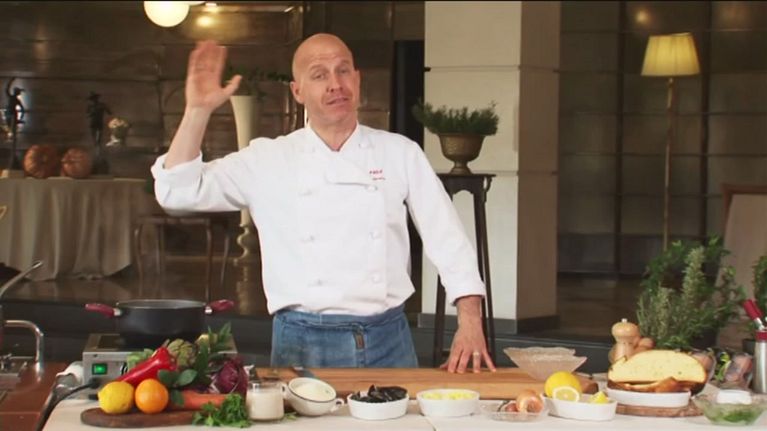 Un'ottima zuppa di pesce preparata dalla cuciniera, Anna Moroni insieme alla campionessa di scherma, Margherita Granbassi, volto sostenitore dell'Airc, per la ricerca contro il tumore al seno: doniamo insieme al numero 45521.