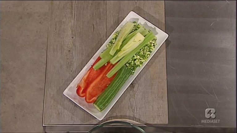 Un piatto nutriente: riso integrale freddo, abbinato con lupuni, seppie, gamberi e vegetali. Il tutto condito con olio.