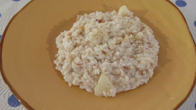 Anna Moroni ci insegna come preparare questo squisito e delicato risotto, dove il mare incontra il dolce della frutta.