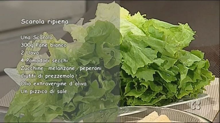 Una ricetta vegetariana: involtini di scarola con pomodori secchi, pane bianco, zucchine, melanzane e peperoni.