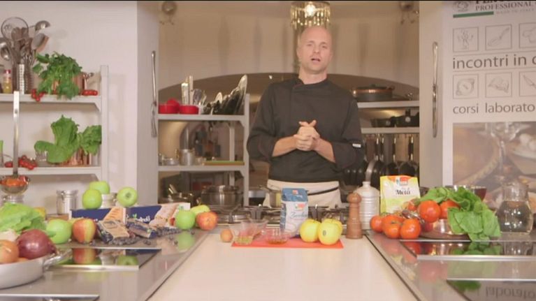 Oggi lo chef preparerà un sorbetto alla mela particolare con zucchero semolato, da servire con un biscotto a tema.