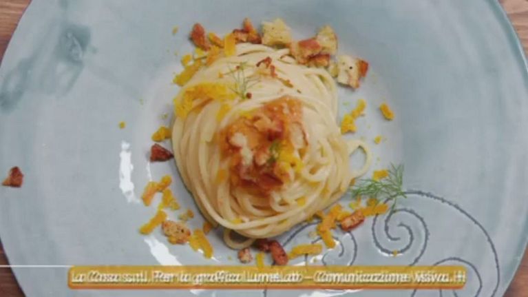Saporitissimo primo piatto, spaghetti conditi con bottarga di muggine, sempice e veloce per una ricetta succulenta.