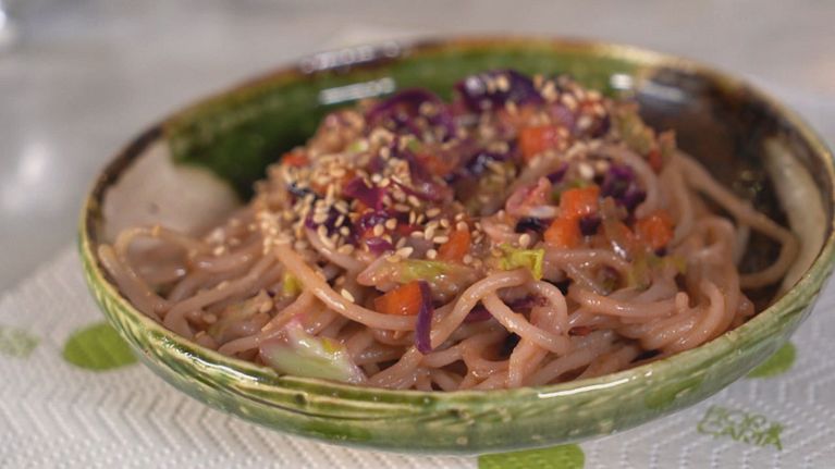 Spaghetti di riso al curry con latte di cocco